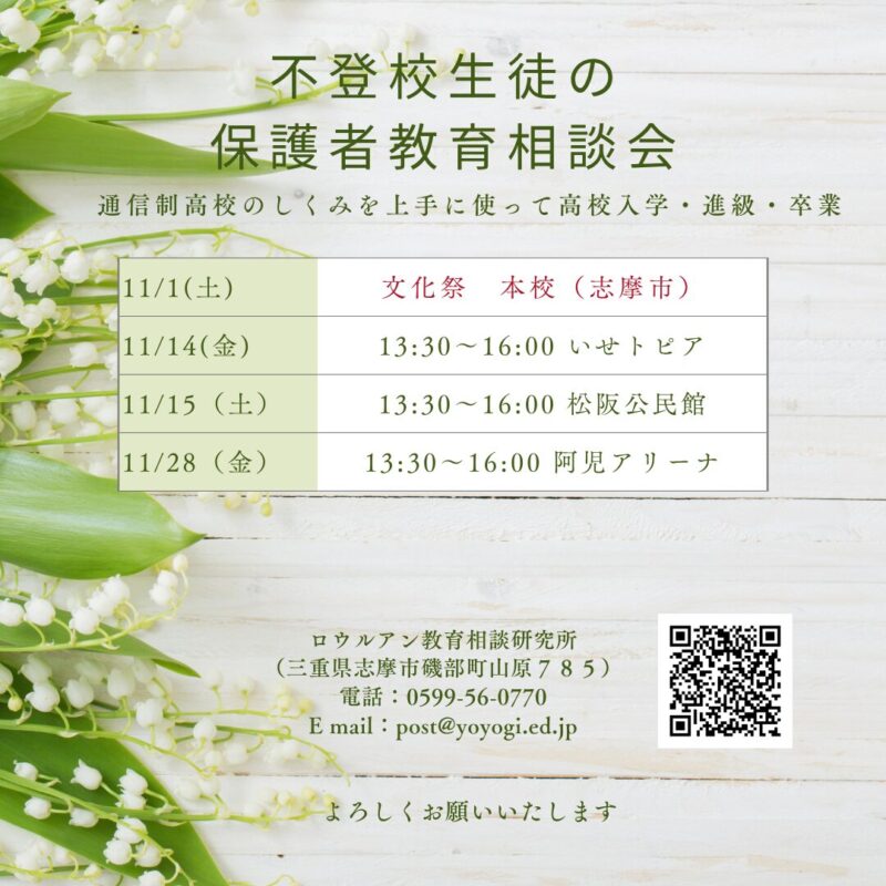 不登校生徒の保護者教育相談会開催(ロウルアン教育相談研究所)